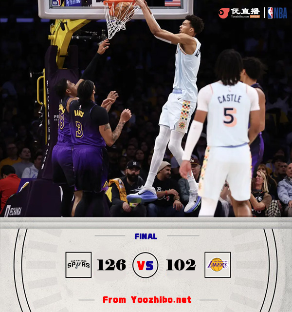 JRS直播网讯北京时间1月14日讯 NBA今日继续开打,湖人今日坐镇主场迎战马刺。湖人此前因为洛杉矶大火的原因两个主场延期首节之争马刺开局2分半里一分未得导致被动开局,湖人则在里夫斯的连续拿分中取得7-0的开局;不过随着比赛深入马刺渐入佳境,文班亚马和瓦塞尔联手抢分帮助马刺后来居上反超比分;次节双方对攻大半节的时间,不过湖人更胜一筹在末段送出8-0的攻势拉开两位数分差并奠定半场9分领先。休息归来马刺迅速做出回应,凯尔登第三节的压哨三分让双方重新回到同一起跑线;末节决胜马刺彻底接管比赛,马刺在文班亚马并没有太大发挥的情况下仍然轰出20-7的攻势直接拉开两位数分差奠定胜局。最终,马刺客场掀翻湖人,并送湖人3连败。