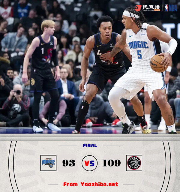 JRS直播网1月22日讯 NBA常规赛,魔术对阵猛龙,魔术最近遭遇3连败,猛龙上场比赛则是输给雄鹿,两队都有多名球员缺阵。比赛刚上来猛龙就接连出现失误,魔术打出10-0的开局,随后他们多点开花一度将分差拉大到21分,布鲁斯-布朗站出来接连砍分帮猛龙稍微追回一些分数,他还在首节结束时命中压哨三分。第二节上来魔术失误增多,巴恩斯带领猛龙连续打出反击缩小分差,魔术在第二节中段一度找回节奏,但并没有能够保持很久,班凯罗压哨上篮打进帮助魔术半场艰难守住5分优势。易边再战,魔术依旧打得十分艰难,猛龙外线找到手感不断下起三分雨,迪克还上演隔人劈扣的精彩表现,猛龙单节打出40-20的比分完成反超。末节魔术依旧主要靠班凯罗和波普拿分,猛龙还是多点开花保持流畅进攻,场上分差被拉大到20分开外,比赛失去悬念,最终猛龙109-93逆转送魔术4连败。