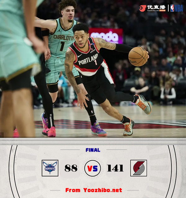 JRS直播网讯 北京时间2月23日讯 NBA常规赛,黄蜂对阵开拓者,黄蜂上场输给掘金,开拓者最近遭遇4连败,本场比赛艾顿和罗威都缺阵。开场没多久开拓者就在阿夫迪亚的带领下打出一波13-0的攻势建立领先,虽然黄蜂两记三分止血,但开拓者再度打出冲击力又将比分拉开,开拓者的外线也逐渐找到手感连中三分。第二节黄蜂进攻依旧打得不理想,鲍尔手感不佳,反观西蒙斯状态火热单节轰下15分帮助开拓者继续扩大优势,半场过后开拓者领先33分。易边再战,鲍尔的表现依旧不佳,开拓者则是全面开花将分差继续拉大,比赛彻底失去悬念,末节成为两队练兵时间,最终开拓者141-88血洗黄蜂结束4连败,黄蜂遭遇2连败了。