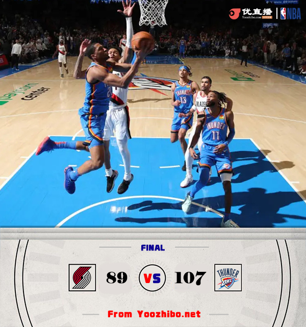JRS直播网讯北京时间3月8日讯 NBA常规赛,雷霆对阵开拓者,雷霆最近5连胜依旧在西部遥遥领先,本场比赛亚历山大、杰伦威和霍姆格伦都缺阵,开拓者上场比赛遭遇失利,还是排在西部第十二。开场后雷霆外线手感不错频频命中三分,在第一节中段他们打出攻势取得领先,随后开拓者也用三分回击缩小分差。第二节上来西蒙斯率先发力带领开拓者反超比分,雷霆通过加强防守多次造成开拓者失误打出反击,并且外线续上火力重新夺回领先,第二节尾声开拓者陷入得分荒,半场过后雷霆领先到18分。易边再战,雷霆上来延续攻势将分差拉大到20分开外,亨德森突然爆发带领开拓者一路追到只差5分。第四节雷霆及时稳住局面,两队围绕10分拉锯,开拓始终无法追上比分,最终雷霆107-89击败开拓者取得6连胜,开拓者遭遇2连败。