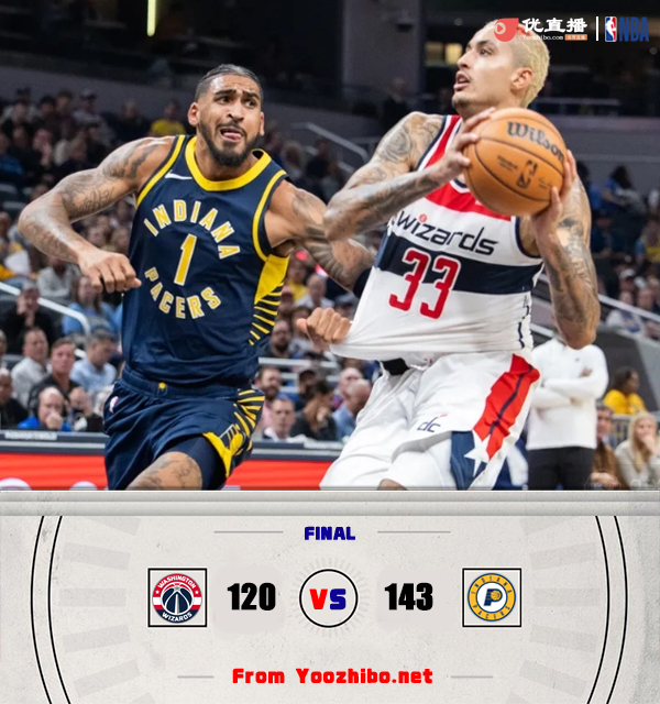 JRS直播网10月26日讯 NBA常规赛,奇才客场挑战步行者。上半场,奇才率先发力占据主动,步行者连中三分迅速回应,奇才持续发力打出12-3的攻击波,步行者多点开花还以颜色,次节步行者利用防守反击完成反超,布鲁斯-布朗和希尔德相继飙中三分,半场战罢步行者73-68领先奇才。易边再战,奇才命中率骤降,步行者稳扎稳打不断扩大领先,末节奇才仍无起色,步行者持续发力将分差拉开到20分以上,在还剩半节多的时间里奇才换下主力投子认负,最终,步行者主场143-120大胜奇才。