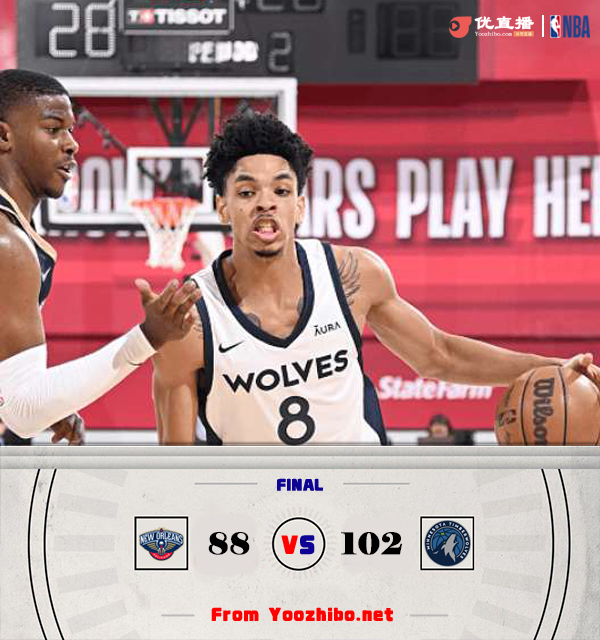 JRS直播网讯 7月8日 NBA夏季联赛开战,鹈鹕对阵森林狼。鹈鹕在今年选秀大会上拿到14号秀后卫乔丹-霍金斯,而森林狼则是在33顺位上选择了前锋莱昂纳德-米勒,两名新秀的表现让人期待。比赛开始,双方迅速进入状态,14号秀霍金斯在外线飚中三分,33号秀米勒也内线取分回应,鹈鹕失误较多,首节森林狼领先7分,次节鹈鹕上来一波10-2一度反超比分,但米诺特站出来接连篮下打成单节12分强势回应,而霍金斯外线手感一般,半场森林狼还是领先9分。下半场,森林狼进攻端突然受阻,丹尼尔斯接连造杀伤追分助鹈鹕一波7-0咬住比分,虽然米勒能给出回应,但鹈鹕还是在三节结束时反超3分,末节双方展开胶着拉锯战,霍金斯里突外投连续取分,但无奈自己的接连失误被森林狼打成反击,摩尔一三分一助攻重新拉开比分,最终森林狼102-88力克鹈鹕。