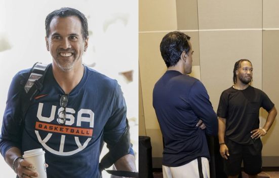 湖人主帅哈姆来到美国男篮集训现场,坐在场边观战以及深情拥抱里夫斯,值得一提的是,里夫斯已经剃掉了络腮胡子,又变成了25岁的样子。
