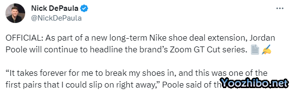 今日耐克官方宣布,奇才后卫乔丹-普尔将继续担任其Zoom GT Cut系列球鞋的代言人,双方达成一份多年的提前续约,普尔本人表示:每次我穿球鞋时都要花费很长时间,而这双鞋是第一双让我能够立即穿上的球鞋。