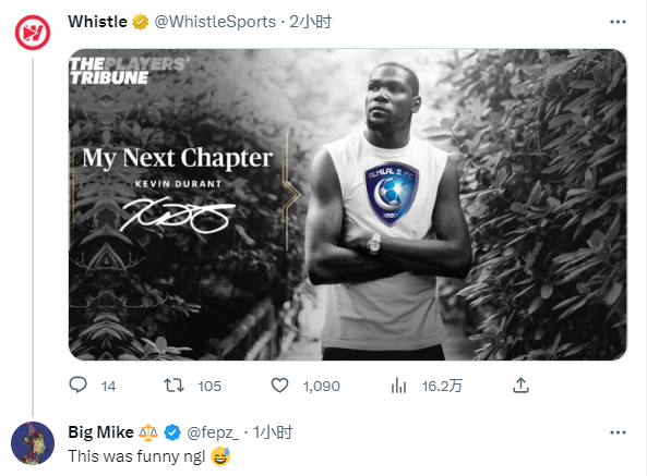 美媒调侃恶搞杜兰特的下一篇章是为利雅得新月效力。