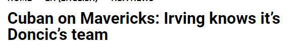 库班明确表态东契奇是独行侠队的老大以及头号球星,换言之,欧文只是球队的二当家;当年欧文申请离开骑士,就是不想当球队的二把手,之后辗转凯尔特人、篮网和独行侠,欧文仍旧没有成为球队的大当家。