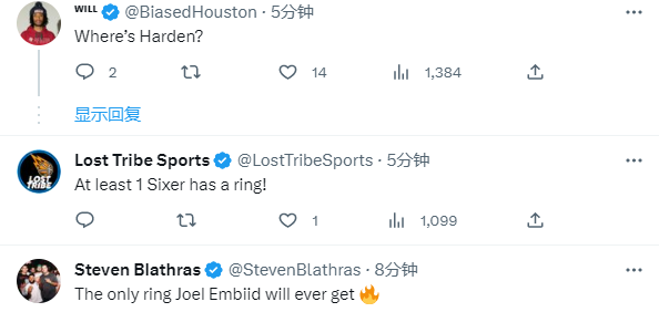恩比德现任队友和前队友前来捧场,合影中没有哈登引热议,有球迷问哈登在哪儿,有球迷直言哈登拒绝参加婚礼;还有球迷晒出哈登此前“舒服的太久,是时候跳出舒适圈了”的动态,写道:哈登真的是这个意思哇;另外还有球迷调侃恩比德至少获得一枚戒指了。