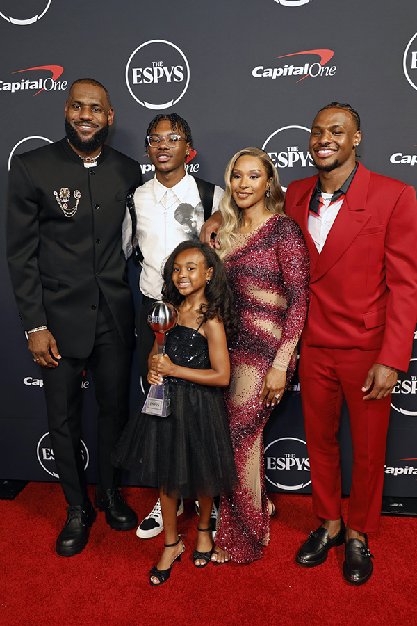 詹姆斯获得ESPY年度最佳破纪录大奖,萨瓦娜祝贺詹姆斯时不小心爆粗口,朱莉提醒自己的妈妈,现场观众起哄,之后萨瓦娜改口夸赞老詹。