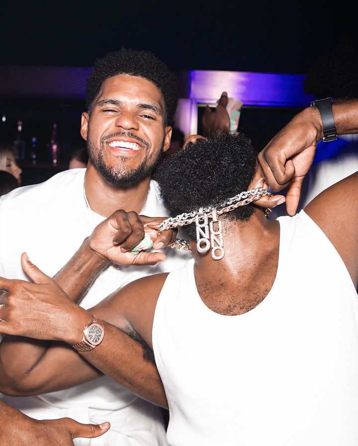 近日,迈克尔-鲁宾在拉斯维加斯举办派对,哈登和恩比德都参加了这一场派对,另外塔图姆、卡梅隆-安东尼、丁威迪、霍姆格伦、麦基、格兰特-威廉姆斯也在现场。