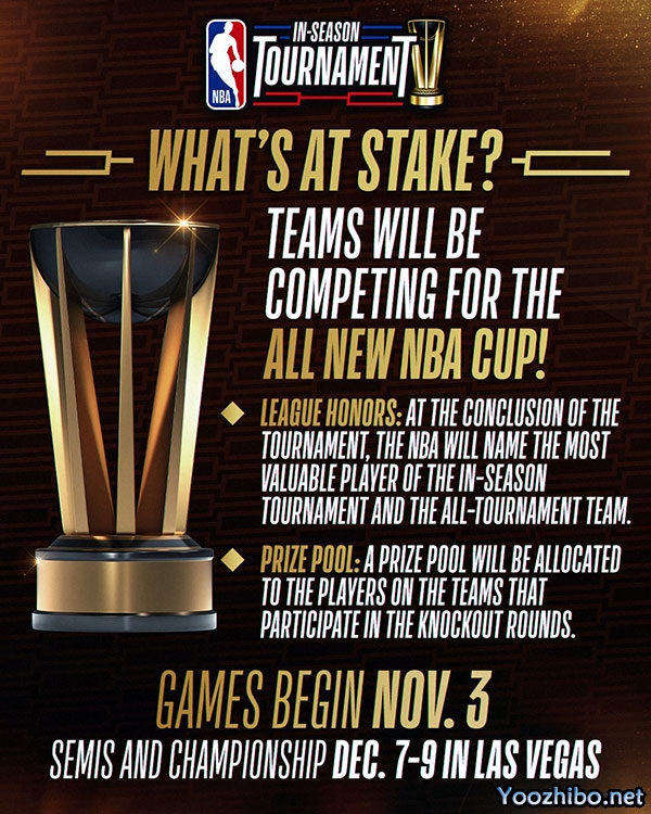 NBA将在2023-24赛季,历史首次进行季中锦标赛,将于北京时间11月4日开打。