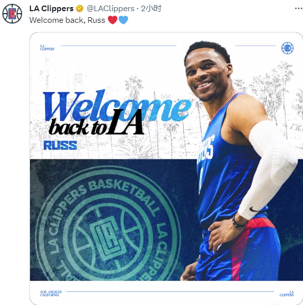 快船正式宣布威少回归,欢迎威少回到洛杉矶,并且晒出威少快船时期的集锦,配文写道:告诉你们朋友们,威少回来了。