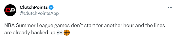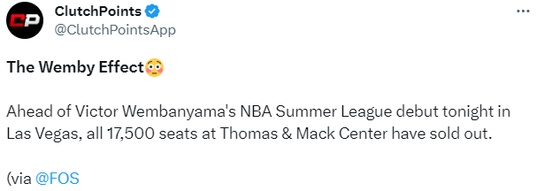 据美媒CLutchPoints报道,文班亚马夏联首秀日,球馆内17500个座位都已售罄;为了今天的比赛,无数球迷提前一个小时排队进入球馆。