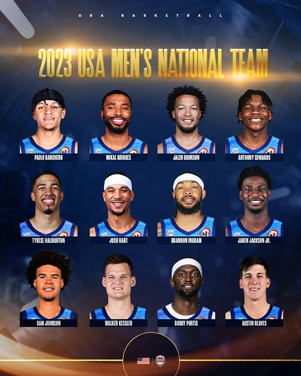 来源:JRS直播网07-07 13:09JRS直播网讯07月07日,美国男篮正式公布参见2023年男篮世界杯的12人球员大名单,英格拉姆等年轻球员率队出征;12人均无世界大赛经验,科尔能否带队一雪前耻?