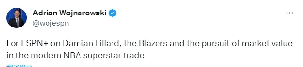 Woj透露,当开拓者总经理克罗宁在就利拉德交易探索更为广阔的前景时,利拉德的经纪人阿隆-古德温一直在给潜在的交易伙伴打电话,警告他们不要为他的客户(利拉德)进行交易。