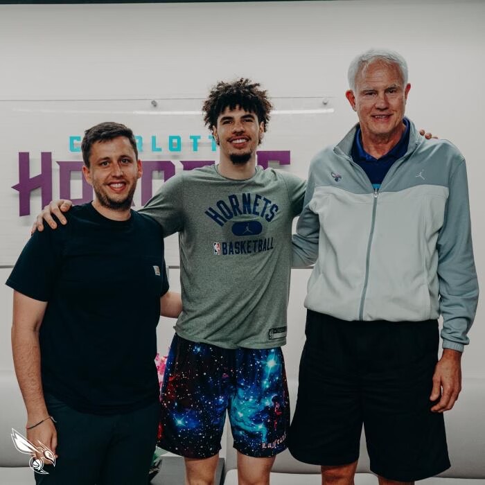 三球身穿黄蜂训练服来到球队办公室,咧嘴大笑十分开心,之后和黄蜂管理层握手,签约时,黄蜂总经理问三球接下来的目标是什么?三球直言一是入选NBA最佳阵容一阵,二是夺得常规赛MVP,并且两个都想要,之后三球表示不过球队的胜利更重要。