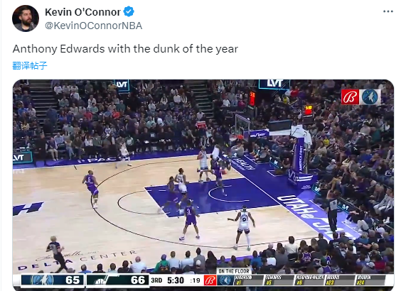 爱德华兹死亡隔扣科林斯引热议,名记凯文-奥康纳发推表示这是年度最佳扣篮;美媒刷屏转发并直呼:我的天呐;凯尔特人球星杰伦-布朗发推高呼:哇塞这也太疯狂了哈哈。