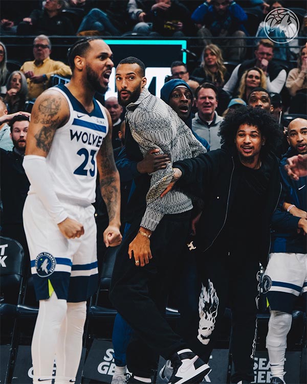 纳兹-里德在防守时被疑似科林斯打到头部,之后里德捂着头部十分痛苦,检查后森林狼官方宣布,纳兹-里德因为头部受伤而退出本场比赛。