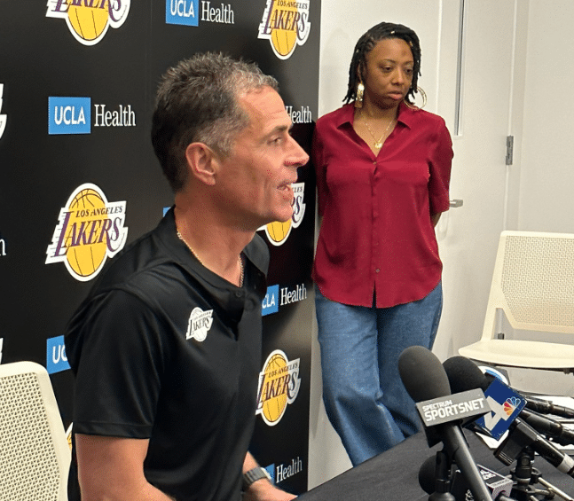 湖人选中两名年轻人,湖人总经理佩林卡接受采访,谈到选中胡德-希菲诺,佩总表示:能够在第 17 顺位得到乐透级别的天才球员胡德-希菲诺,我们对此感到非常兴奋。