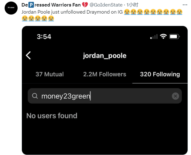 据报道,普尔被交易后,他在Ins上取消关注格林的账号;去年普尔和格林在训练时发生激烈冲突,两人从口角争执升级到肢体冲突,普尔被格林一拳打倒,勇士内讧影响了球队整整一年。