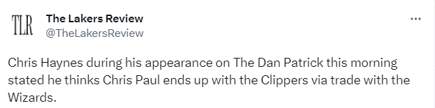Windhorst在节目中表示,保罗和快船对重聚互用兴趣,快船(不是湖人)获得保罗的最爱,奇才和快船已经在讨论潜在的CP3交易方案。