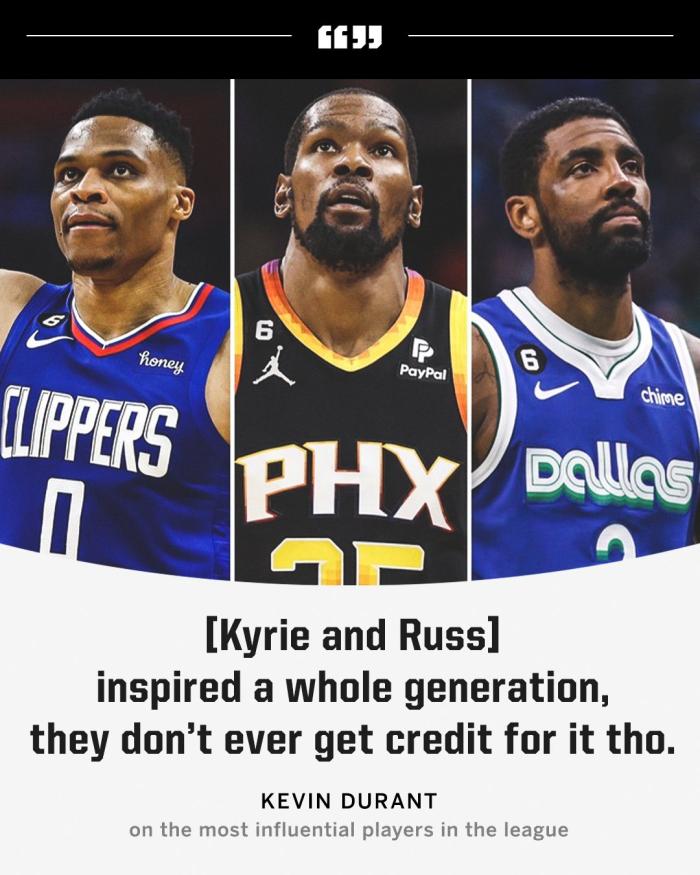 杜兰特又回复:欧文和威少也是,他们启发了整整一代人,但他们从来没有因此而受到赞扬。