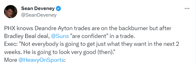 一位西部高管表示:他们(太阳队)有信心完成一些事情,在接下来的两周里,并不是每个人都能在选秀、交易和自由球员市场上得到他们想要的东西,如果艾顿还没有离开,他在波特兰、夏洛特或达拉斯这样的球队看起来会很好。