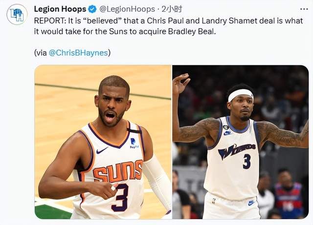 来源:JRS直播网06-18 11:46JRS直播网讯06月18日,来自NBA名记Shams的报道,比尔争夺战进入决赛圈,奇才正在和决赛圈的两支队伍太阳和热火进行认真的谈判。太阳成为比尔的重大潜在下家,而且比尔手握交易否决权。此外根据名记Haynes报道,据信如果太阳奇才发生交易,保罗和沙梅特会成为比尔交易的一部分。