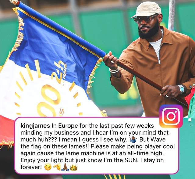 来源:JRS直播网06-17 12:44JRS直播网讯06月17日,正在欧洲度假的詹姆斯通过社交媒体发布了一条动态,疑似回击此前掘金主帅马龙的暗讽。詹姆斯写道:“过去几周我在欧洲,不过我听到有人很惦记我?请让他们冷静下来,因为这台跛脚的机器正处于历史最高水平。享受你们的光吧,但要知道我才是太阳,我永远都在。”