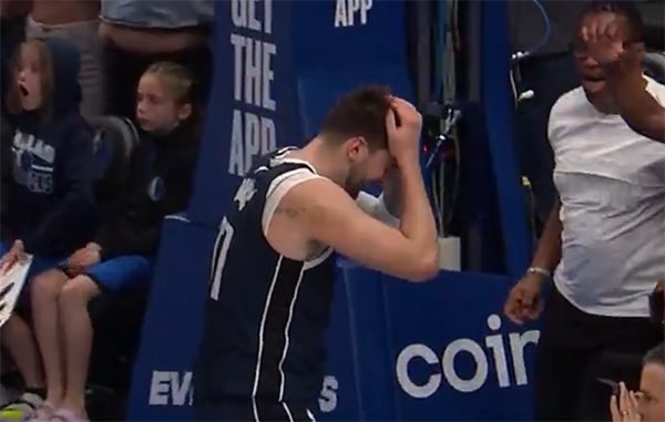 欧文绝杀后疯狂庆祝,独行侠球馆沸腾了,独行侠众将都压在欧文身上狂欢,马克-库班也冲上球场与球员一起庆祝;东契奇的反应十分抢镜,卢卡双手抱头、直接蹲在地上、掩面庆祝,一副难以置信的样子;之后东契奇过去与队友一起庆祝。