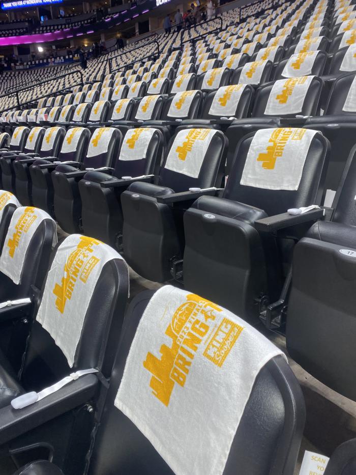 掘金主场已经铺满了应有“bring it in ”冲击队史首冠的口号。