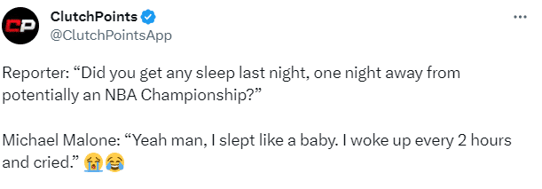 记者问:昨晚能睡着吗?在你们可能会成为总冠军的前一个晚上。