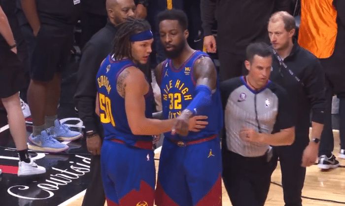 末节比赛还剩2分钟,掘金领先两位数,格林坐在替补席冲着队友高喊:还剩2分钟,结束掉比赛,别拿比赛当儿戏,认真对待,终结掉比赛。