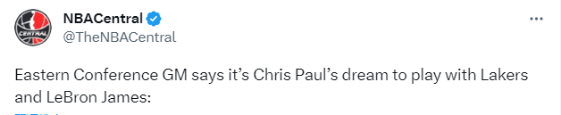 东部匿名总经理透露保罗一直梦想着成为一名湖人球员以及和詹姆斯一起打球。