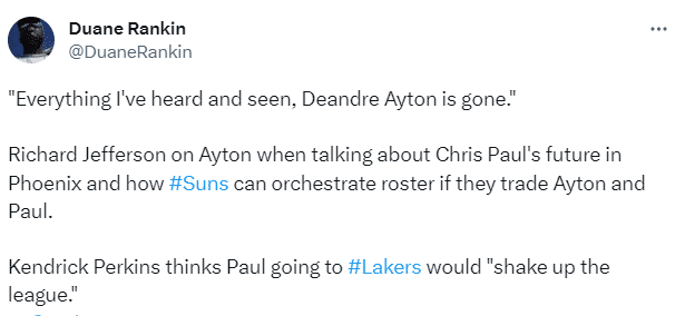 理查德-杰弗森表示艾顿离队已成定局,名嘴帕金森表示保罗去湖人将会撼动联盟。