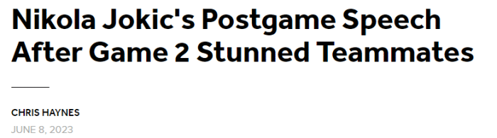 一般情况下,掘金输球后都是老将小乔丹、波普或者伊斯梅尔-史密斯发表一些讲话,这这一次约基奇也在更衣室进行了演讲。