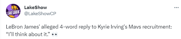 曝詹皇考虑欧文的招募!更新社媒满脸笑容 巴爷:他肯定不会去独行侠