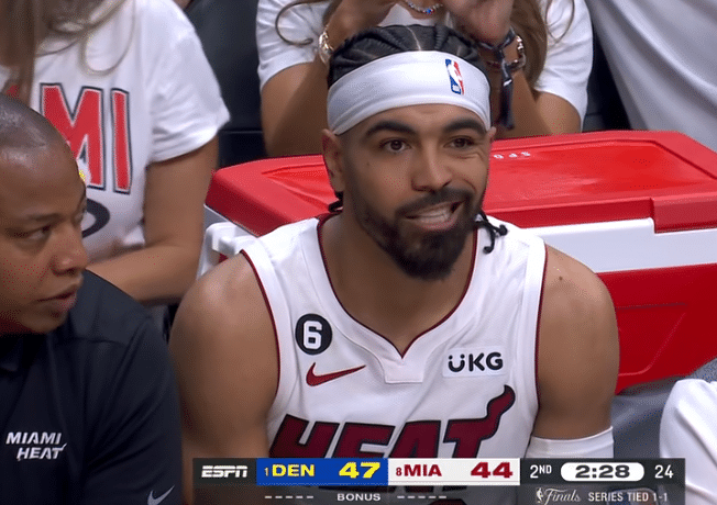 裁判吹罚引争议,第二节8分51秒,裁判吹罚引争议,文森特防守穆雷(有一个推人动作)被吹犯规,掘金边线发球,还没开表,裁判又吹罚文森特对约基奇犯规,文森特0秒2次犯规引争议,热火球迷怒骂裁判垃圾。