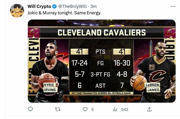 约基奇穆雷都不在乎数据,但他们的表现已经征服无数球迷,美球迷把约基奇和穆雷比成骑士时期詹姆斯和欧文同砍41分,以及把他们比成科比和奥尼尔以及魔术师和贾巴尔。