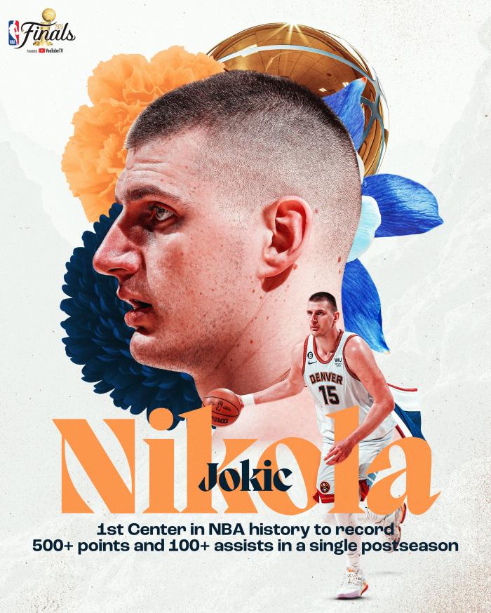 1、约基奇成为史上第一位在单个季后赛至少拿到500分100助攻的中锋