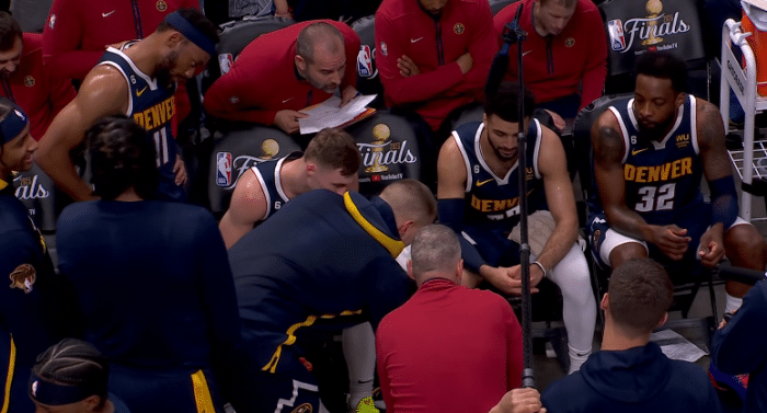 末节,掘金全队突然集体哑火,被热火打出15-2攻势而且早早犯满5次,8分59秒约基奇造犯规两罚全中,随后约基奇高举高打再拿2分,巴特勒回应三分,穆雷突破上篮,热火继续保持领先,约基奇关键时刻,阿德巴约2+1以及大帽穆雷,生死时刻,约基奇和穆雷带队11-2打回悬念,穆雷连续续命三分,阿德巴约两罚全中,最终掘金G2惜败。