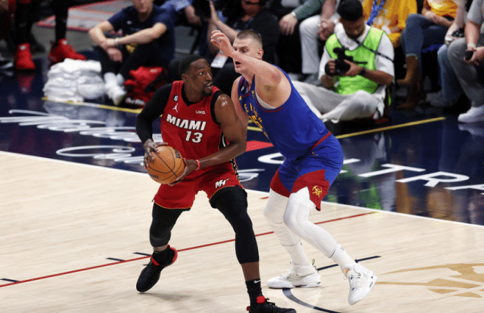总决赛G1,热火上半场一直落后处于被动的局面,下半场约基奇和穆雷第三节更是带队一度领先到24分,三节打完热火落后21分,末节热火一度11-0缩小分差,之后约基奇带队稳住局面并且在关键时刻接管比赛,最终热火93-104输掉11分。