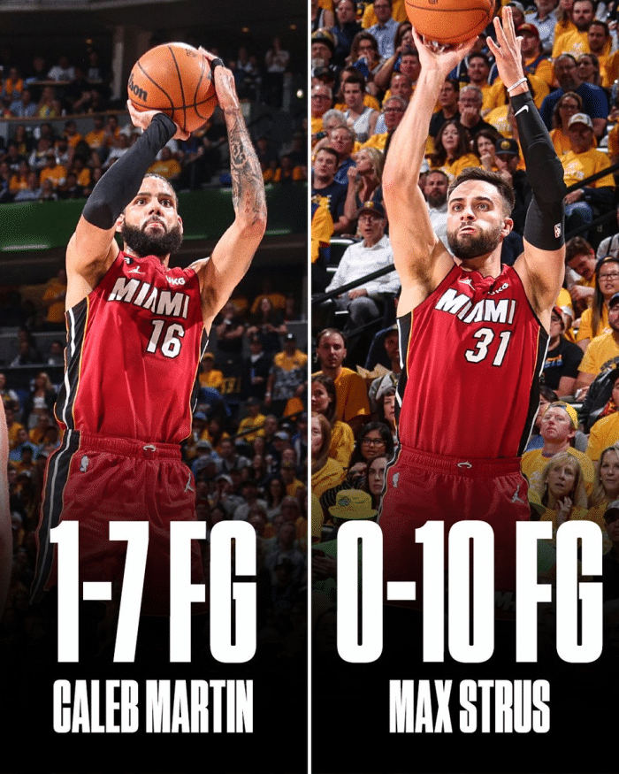 原因一:阿德巴约打得挺强硬,可热火落选秀们不好使了。斯特鲁斯首发上场20分钟10投0中、三分9中0拿到0分5篮板3助攻,在场正负值-12;马丁则是7投1中仅3分4篮板,在场正负值-10,热火两大首发加起来17投1中、三分11中1仅仅拿到3分,手感糟糕沦为热火输球的罪人,末节他俩都直接被弃用。