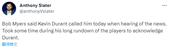 迈尔斯还透露杜兰特听到他离职的消息后给他打了电话。