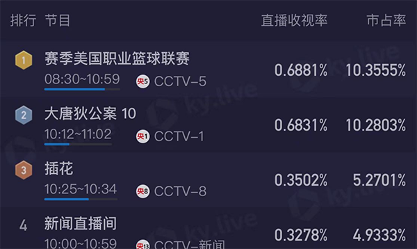 所以在收视率层面,这场比赛的数据很高,同时间段排名全国前列,高峰时刻位居全国第一,足以看出大家对于这场周末进行的湖勇大战的关注。