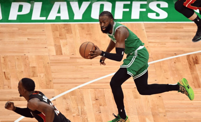 末节塔图姆和布朗继续带队保持领先,由于看不到翻盘希望,巴特勒、阿德巴约等热火主力提前放弃比赛,热火众将坐在替补席一脸沮丧,双探花带队打到比赛还剩3分20秒才打卡下班,最终绿军稳稳拿下一场大胜,延续G4下半场的状态 。