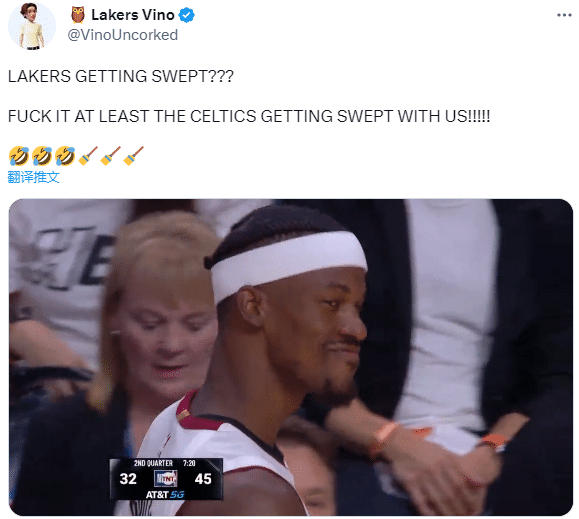 第二节,热火继续扩大领先,邓罗和马丁输送火力,7分20秒热火45-32领先13分,镜头给到巴特勒,后者露出杀人诛心的表情;暂停回来,邓罗轰进三分,巴特勒在进攻端发力,罚球时全场球迷高呼MVP,热火59-37一度领先到22分,之后凯尔特人追分,巴特勒迎着格威打成不讲理2+1,倒地指着对手,格威一脸懵逼,也许他心想:“早知道不惹他了”。