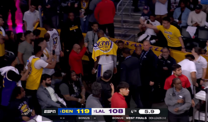 西决G3关键一战,湖人末节被掘金打出13-0瞬间崩盘,詹姆斯和浓眉的努力都白费了,拉塞尔全场8投1中又拖累了球队,由于比赛早早失去悬念,湖人球迷十分失望,提前退场,只能说希望越大,失望就越大;球迷纷纷退场,并且集体狂嘘詹姆斯,比赛还没结束,詹姆斯一脸绝望和沮丧,提前离场返回更衣室。