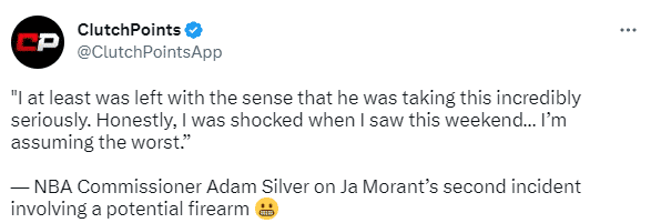 禁赛一年?联盟总裁正式回应莫兰特又持枪事件:我正在做最坏的打算