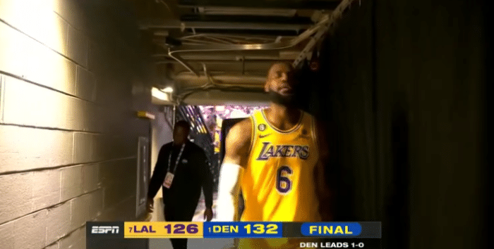 详解湖人西决G1惜败原因:詹皇沮丧离场 哈姆坑惨詹眉+约基奇超神