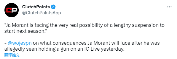 ESPN名记Woj跟进报道,莫兰特很可能在下赛季面临很长一段时间的禁赛。